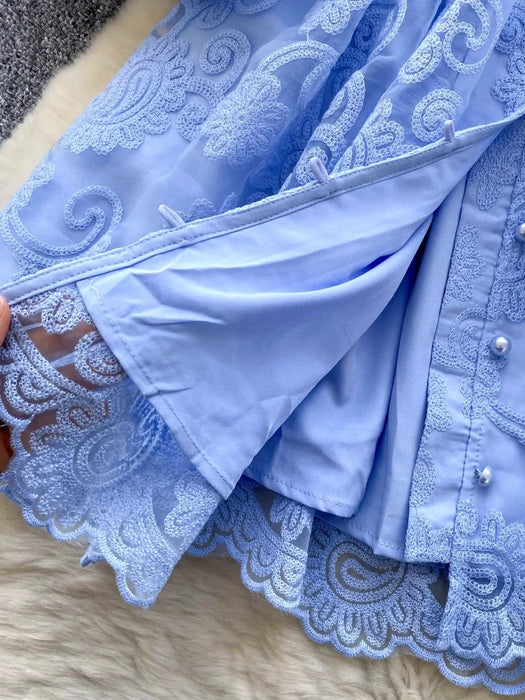 Elegant Vintage French Embroidery Lace Style Long Lantern Sleeves Shirt Dress