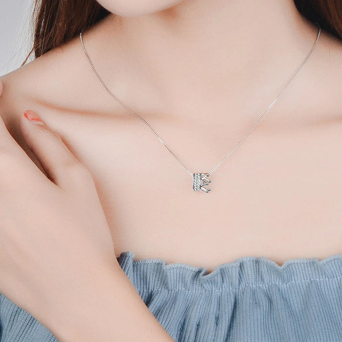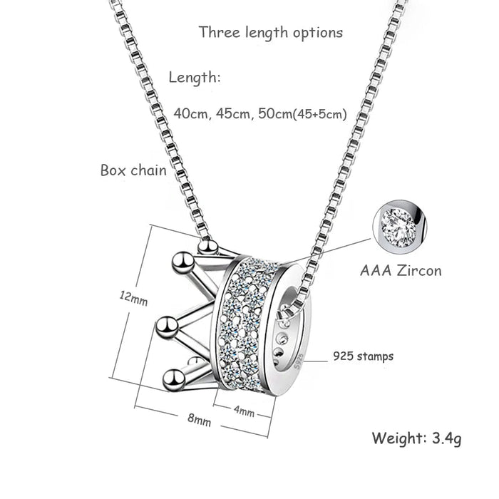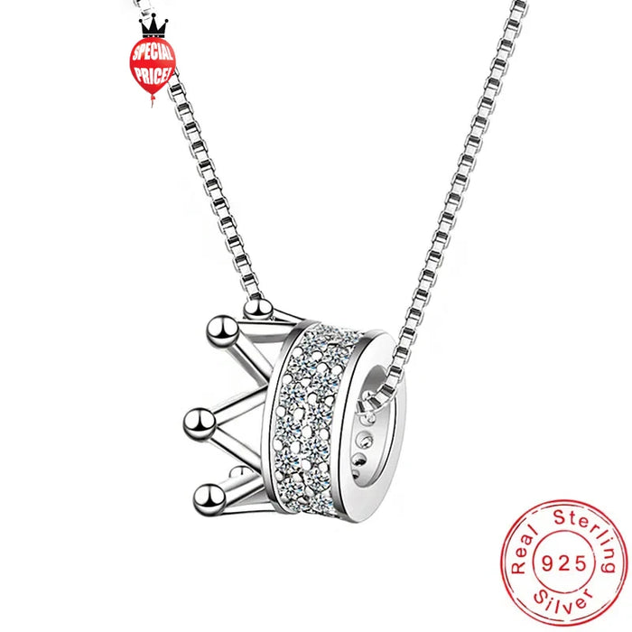 925 Sterling Silver Rhinestone Crown Charm Pendant Necklaces