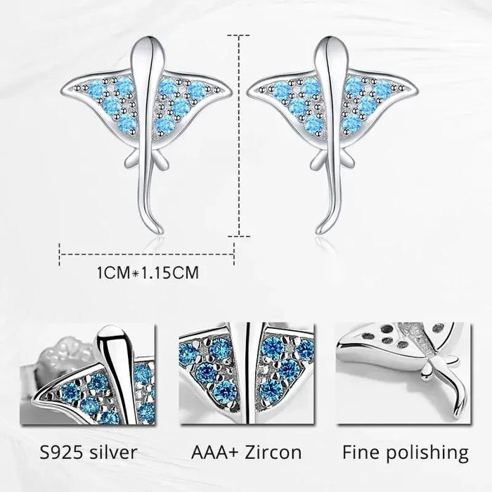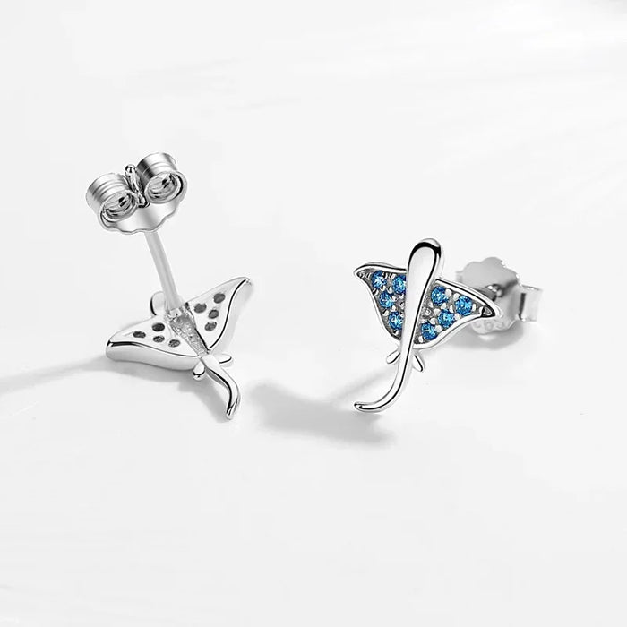 925 Sterling Silver Ocean Blue Devil Ray Stud Earrings