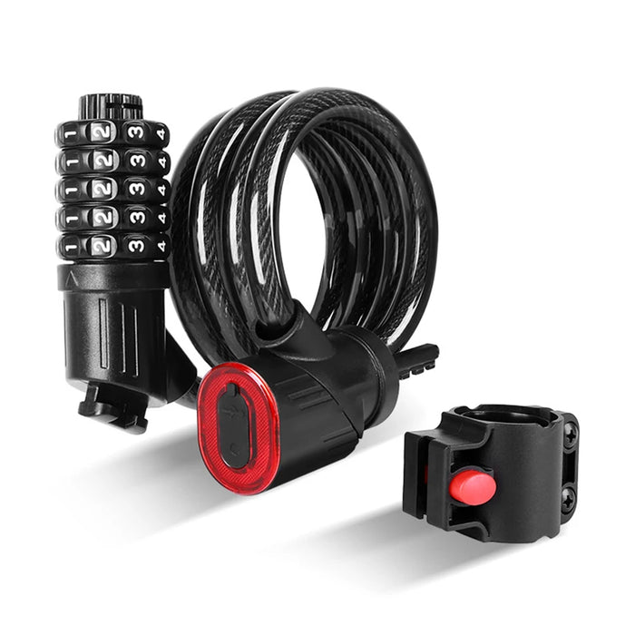 Bicycle Steel Cable Lock With Resettable 5-Digit Combination Dial And Tail Light