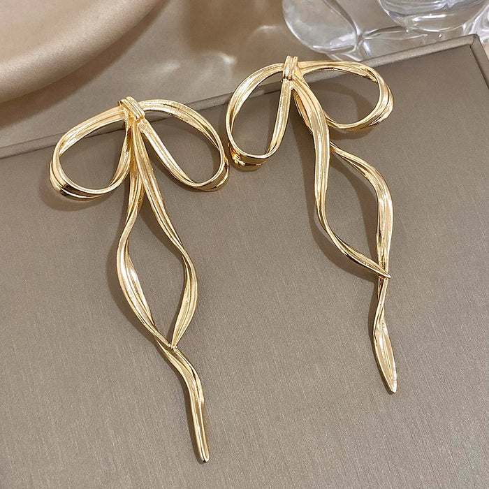 Big Ribbon Bow Style Elegant Dangle Earrings