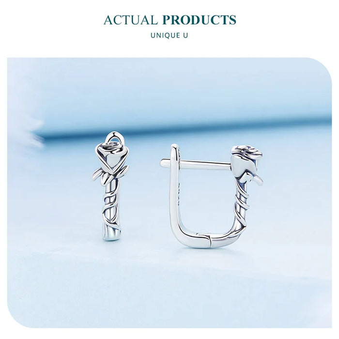 Featuring a unique rose U-shaped design, these earrings add a touch of elegance to any outfit.