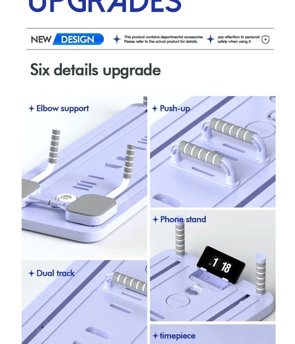 This ab board offers comprehensive features including knee protection, smart timing, stable design, full-body workout capabilities, convenient storage, and exceptional quality. The advanced memory foam knee pad gently cushions your knees, enhancing comfort. An integrated smart timer provides accurate and efficient tracking, helping you push your limits. The wide panel design surpasses traditional models, ensuring worry-free balance during workouts. This versatile board caters to all your fitness needs, from abs to full-body exercises. Its foldable design is compact and space-saving, ready to use whenever you need it, perfect for modern living. With thick foam elbow pads and a rubber-coated anti-slip handle, every detail is crafted for the ultimate comfort. Choose this board to embark on your journey to a healthier, fitter you!