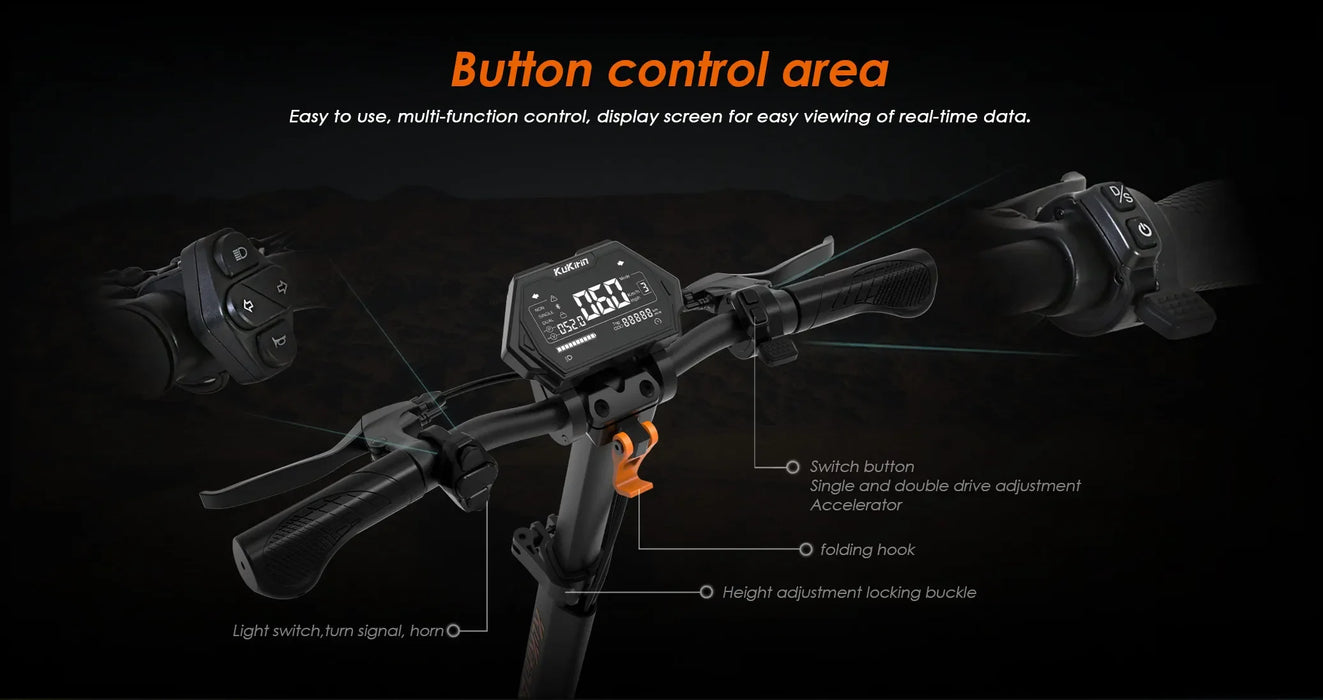 Featuring 20.8AH ≤ 70km removable battery with spring waterproof cover design, 2A charging port allows you fully charged in 10-11H, ensuring long-lasting performance for your adventures.