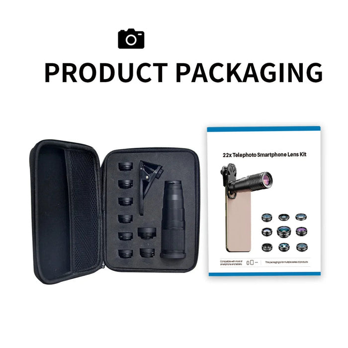 10 IN 1 22x Telephoto Effect, Wide Angle, Macro, Fisheye Lens And CP, Flow, Radial, Star Filters, Mobile Phone Camera Lens Set