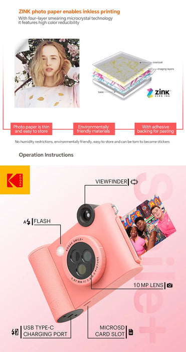 Kodak Smile+ 10MP Wireless Digital Instant Camera With ZINK Inkless Printing Technology