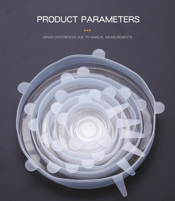 6 Pcs/ Set Eco-friendly Stretchy Silicone Food Storage Container Lids