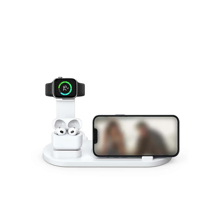 This multifunctional wireless charging stand is designed to charge your mobile phones, smartwatch and wireless earphone simultaneously!