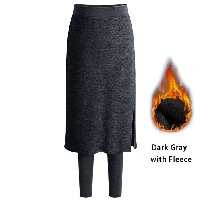 Soft Stretchy One Piece Fleece Or Non-fleece Midi Skirt Plants Leggings